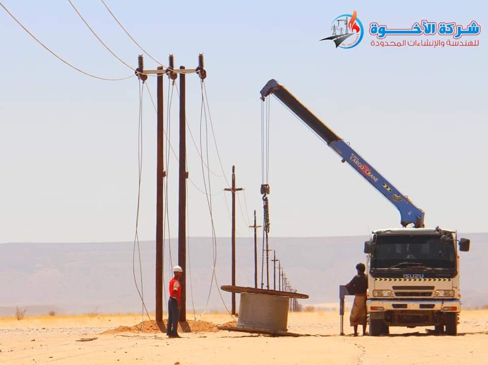 شركة الأخوة تستعُد لتسليم مشروع " انشاء خط ضغط عالي بطول (57KM) وبقوة (33KV) من قطاع (S2) بالعقلة الى مركز مديرية عرماء " بمحافظة شبوة بعد استكمال أعمال الانشاء فيه